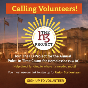 The h3 Project is once again leading the Union Station team for Washington, DC’s Point-In-Time Count on Wednesday, January 28, 2026 — and we urgently need volunteers.